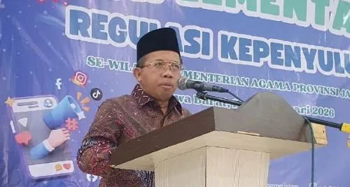 “Dakwah tidak cukup dilakukan secara konvensional. Penyuluh harus mampu memanfaatkan media sosial agar pesan keagamaan hadir secara relevan, menjangkau generasi muda, dan tetap otoritatif di tengah derasnya arus informasi,” kata Direktur Penerangan Agama Islam Kemenag, Muchlis Muhammad Hanafi dalam giat Implementasi Regulasi Kepenyuluhan Tahun 2026 yang dikemas dalam pelatihan media sosial bagi sekitar 700 Penyuluh Agama Islam se-Priangan Timur, di Aula Gedung Al-Amin, Tasikmalaya. Pelatihan ini berlangsung tiga hari, 11 – 13 Februari 2026.