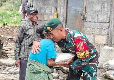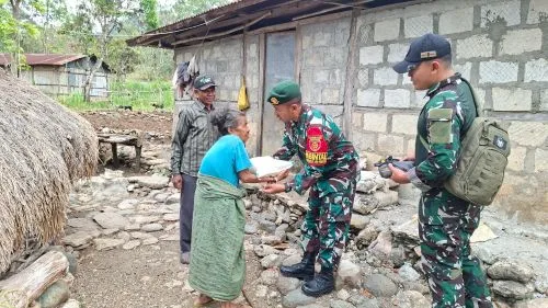 EBAN- Prajurit Makosatgas Pamtas RI-RDTL Sektor Barat Yonarhanud 2 Kostrad adakan kegiatan Jumat Berkah. Kegiatan ini berikan bantuan sembako  bagi masyarakat perbatasan yang membutuhkan di Desa Eban, Kecamatan Miomaffo Barat, Kabupaten TTU, Jumat (17/10/2025) hari ini.