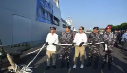 Pangkoarmada II Laksda TNI I G. P. Alit Jaya, SH, M.Si melepas Ekspedisi Rupiah Berdaulat (ERB) 2025 di Dermaga Madura Markas Koarmada II Ujung Surabaya, Selasa (14/10/2025) hari ini. (Foto: Pen/2)