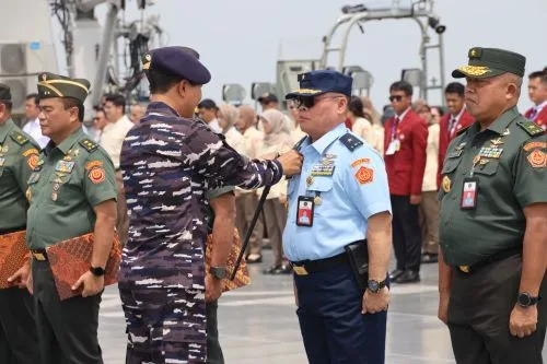 SURABAYA–Pangkoarmada II Laksda TNI I G. P. Alit Jaya, SH, M.Si , mewakili Pangkoarmada RI Laksdya TNI Dr Denih Hendrata, SE, MM menyematkan Brevet Kehormatan Kapal Permukaan TNl Angkatan Laut kepada Rektor Universitas Pertahanan Rl, Letjend TNI (Purn) Dr Anton Nugroho, Rabu (22/10/2025) hari ini.