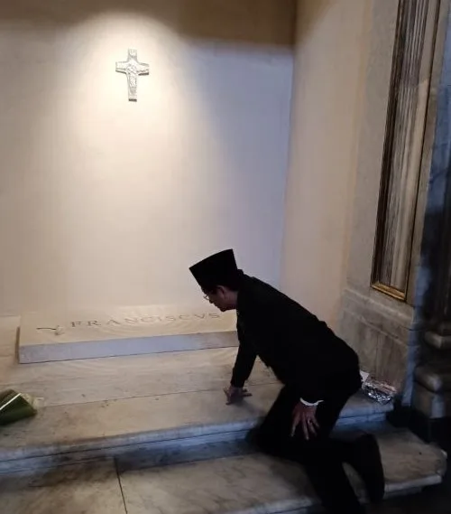ROMAMenteri Agama (Menag) Nasaruddin Umar didampingi Dubes LBBP RI untuk Takhta Suci Michael Trias Kuncahyono, berziarah ke makam Paus Fransiskus, di Basilika St. Maria Maggiore, Roma, Senin (27/10/2025), pagi pukul 09.00 dan dilanjutkan ke Basilika St. Petrus, Vatikan.