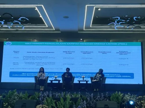 menambahkan bahwa proses perizinan lingkungan untuk proyek Pengelolaan Sampah menjadi Energi Listrik (PSEL) Sementara masih mengacu pada Peraturan Menteri Lingkungan Hidup dan Kehutanan Nomor 4 Tahun 2021 dengan jenis dokumen Analisis Mengenai Dampak Lingkungan Hidup.