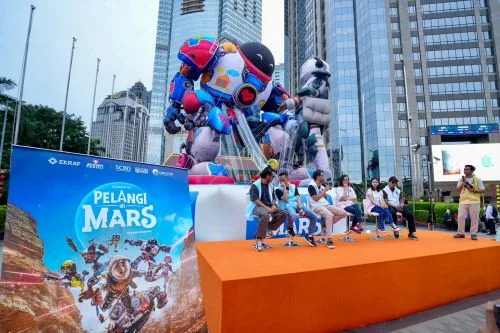 “Film Pelangi di Mars bukan hanya pencapaian sebuah film Indonesia, tetapi juga perkembangan teknologi yang mana dunia bisa melihat mahakarya dari talenta-talenta anak bangsa yang kreatif. Kami bangga dapat mendukung Pelangi di Mars sebagai salah satu film Indonesia yang menunjukkan pencapaian besar dari sisi skala produksi dan kualitas visual,” ungkap Wamen Ekraf Irene saat meresmikan balon raksasa Pelangi dan Robot Batik di SCBD Tunnel BEJ, Jakarta belum lama ini.