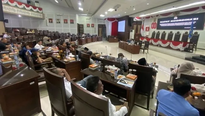 MALANG–DPRD Kota Malang menggelar rapat koordinasi (rakor) evaluasi pelaksanaan Porprov IX Jatim 2025, Rabu (20/8/2025) di ruang rapat paripurna DPRD Kota Malang. Para wakil rakyat itu menghadirkan jajaran Disporapar dan KONI Kota Malang.