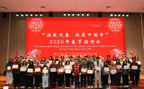 SekarangAja, MALANGEmpat mahasiswa Universitas Ma Chung berhasil meraih Beasiswa Konsulat Jenderal Tiongkok di Surabaya bersama Confucius Institute/Pusat Bahasa Mandarin Universitas Negeri Malang. Seremoni penyerahan beasiswa digelar Selasa (3/3/2026) lalu dalam seremoni Tahun Baru Imlek 2026 bertema “Menyambut Imlek dengan Kehangatan, Merayakan Tahun Baru Tiongkok Bersama” yang diselenggarakan Konsulat Jenderal Republik Rakyat Tiongkok di Surabaya.