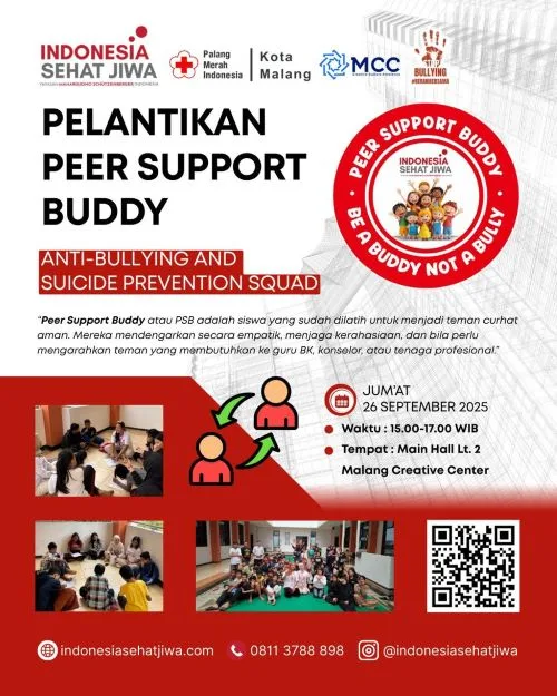 Pelantiklan Peer Support Buddy akan dilakukan di main hall Lt 2 Malang Creative Center (MCC), Jumat (26/9/2025) besok.