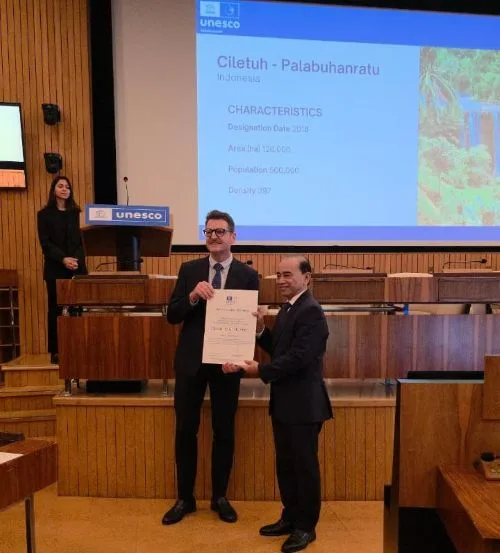 Dalam seremoni tersebut, UNESCO Chief of the Section for Earth Sciences and Geoparks, Kristof Vandenberghe, memberikan apresiasi sekaligus menyoroti sejumlah tantangan utama yang dihadapi jaringan UGGp secara global saat ini.