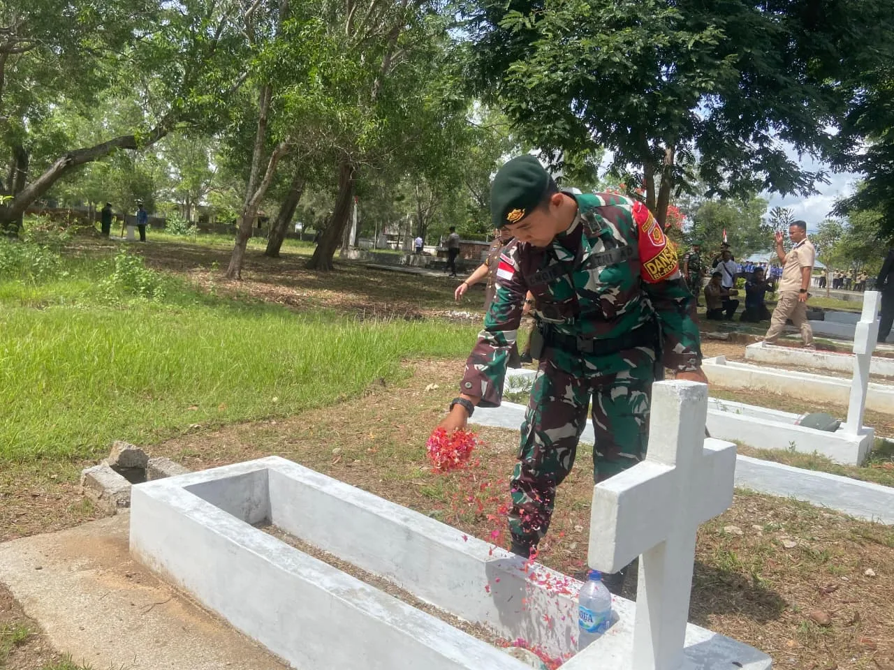 Rangkaian kegiatan dilanjutkan dengan pelaksanaan ziarah di TMP Cendana Loka. Dansatgas Pamtas Bersama Bupati TTU dan rombongan melaksanakan kegiatan tabur bunga untuk mengenang jasa para pahlawan. (red)