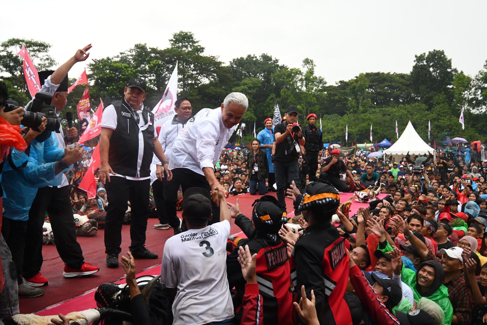 KOTA MALANG– Calon Presiden Nomor Urut 3 Ganjar Pranowo hadir dalam kampanye terbuka di Kota Malang, Selasa (30/1) sore tadi. Meskipun diguyur hujan lebat, Ganjar tetap hadir dan disambut penampilan atraksi seni budaya bantengan.