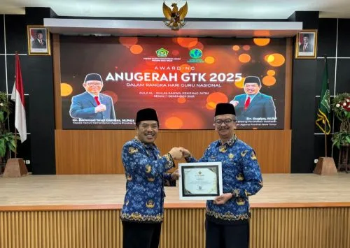 Penghargaan ini diberikan pada ajang Awarding GTK Madrasah Provinsi Jawa Timur 2025. Penghargaan yang tertuang dalam e-Sertifikat Nomor 993/Kw.13.02/11/2025 tersebut diserahkan Kabid Pendidikan Madrasah Kanwil Kemenag Jatim, Sugiyo, kepada Kepala MAN 2 Kota Malang pada peringatan Hari Guru Nasional 2025, Senin (1/12/2025), di Aula Al-Ikhlas Kanwil Kemenag Jawa Timur.