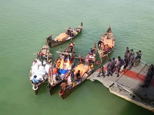 Unsur Satuan Kapal Bantu (Satban) Koarmada II itu melaksanakan debarkasi bantuan menuju Desa Kuala Pusung Kapal, Kecamatan Seruway, Kabupaten Aceh Tamiang. Mereka memanfaatkan kapal-kapal nelayan setempat untuk proses pengangkutan bantuan ke daratan.