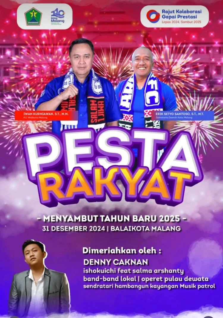 Event Ini diadakan menyambut Tahun Baru 2025. Selain Denny Caknan, Pesta Rakyat di Balai Kota Malang ini akan menghadirkan pula artis kondang lainnya seperti Ishokuichi dan Salma Arshanty.