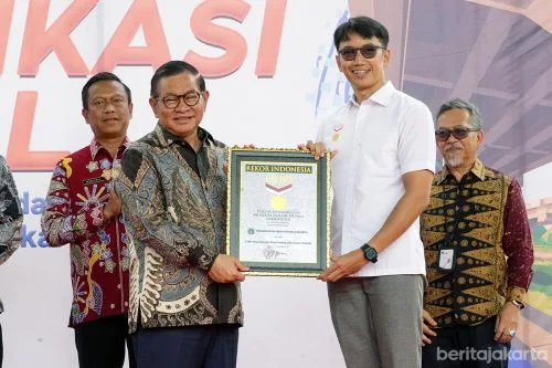 JAKARTA– Gubernur DKI Jakarta Pramono Anung membuka kegiatan beautifikasi atau mural di area bawah Jalan Tol Dalam Kota dan Tol Becakayu, Cipinang, Jakarta Timur, Kamis (11/12/2025) hari ini. Kegiatan ini berhasil memecahkan rekor Museum Rekor Dunia Indonesia (MURI) sebagai pengecatan tiang tol terbanyak dan terpanjang, meliputi 1.326 tiang di sepanjang 18 kilometer.