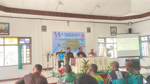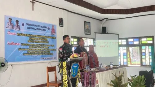 NOEMETO–Dansatgas Pamtas RI-RDTL Sektor Barat Yonarhanud 2 Kostrad, Letkol Arh Endis Fahrul Rizal, S.Hub.Int., M.Sc menghadiri kegiatan sosialisasi perencanaan penyuluhan tematik perbatasan di Aula Suverdy, Noemoto, Kabupaten, TTS, NTT, Jumat (5/12/2025).