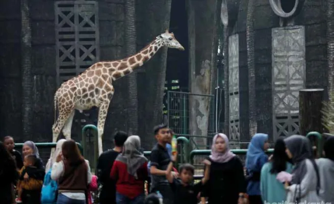 Pengunjung memadati kandang jerapah di Taman Margasatwa Ragunan (Foto: Andri Widiyanto-beritajakarta.id)
