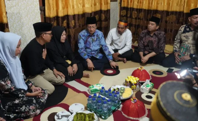 Menteri Agama Nasaruddin Umar mengunjungi rumah duka korban wafat kebakaran gedung DPRD Kota Makassar. (foto: kemenag.go.id)