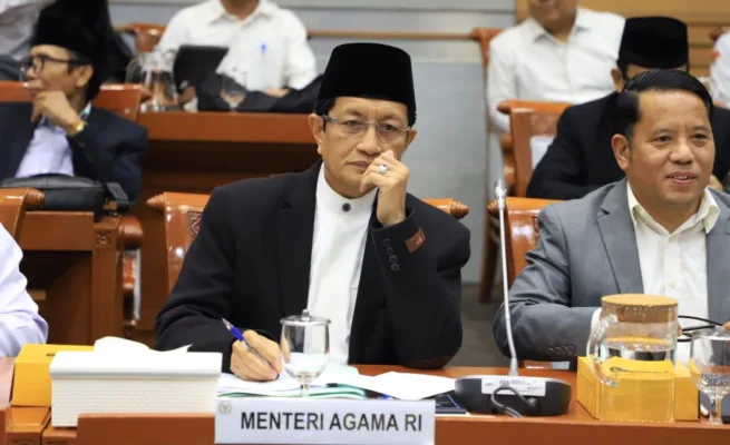 Menteri Agama, Nasaruddin Umar saat rapat kerja dengan Komisi VIII DPR RI di Komplek Parlemen, Senayan, Jakarta. (Foto: Isykariman Ismail-kemenag.go.id)