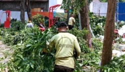 Sejumlah petugas melakukan pemangkasan dahan pohon yang rawan tumbang. (Foto: Tiyo Surya Sakti-beritajakarta.id)