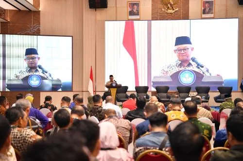 Mendikdasmen Abdul Mu’ti memberi sambutan disampaikan pada kegiatan Penandatanganan Nota Kesepahaman antara Yayasan Pendidikan Adiluhung Nusantara (YPAN) dan Pemerintah Kabupaten Anggota APKASI yang dirangkaikan dengan Koordinasi Program Kerja Sama Pendidikan, di Jakarta, Kamis (16/10/2025) hari ini. (Foto: Biro Komunikasi dan Hubungan Masyarakat Kemendikdasmen)