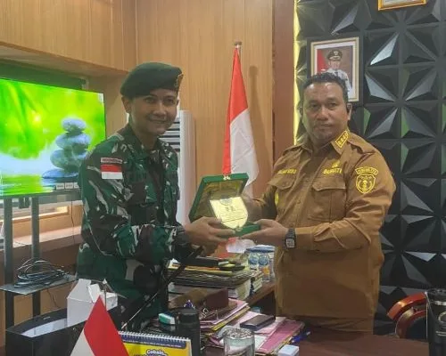Dansatgas Pamtas RI-RDTL Sektor Barat Yonarhanud 2 Kostrad, Letkol Arh Endis Fahrul Rizal, S.Hub.Int., M.Sc., melakukan kunjungan kerja sekaligus silaturahmi dengan Bupati Timor Tengah Utara (TTU) Yosep Falentinus Delasalle Kebo, S.IP, MA di Kantor Bupati TTU di Kefamenanu, Senin (27/10/2025). (Foto: Pen Yonarhanud 2 Kostrad).