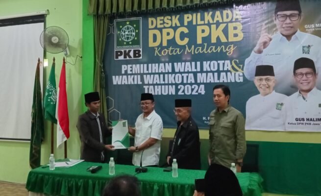 Ahmad Farih Sulaiman yang akrab disapa Gus Farih saat mendaftarkan diri sebagai Bakal Calon Wakil Wali Kota Malang di DPC PKB Kota Malang.