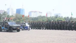 Prajurit dan unsur Koarmada II terus berlatih intensif demi mensukseskan peringatan HUT ke-80 TNI Tahun 2025. Itu tampak pada Sabtu (27/9/2025) hari ini. (Foto: Pen/2)