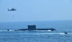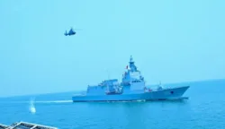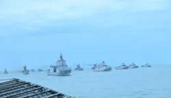 Geladi Demo Laut, Sailing Pass, dan Flying Pass pada acara Presidential Inspection dalam rangka memperingati HUT ke-80 TNI Tahun 2025 di Perairan Teluk Jakarta. (Foto: Pen/2)
