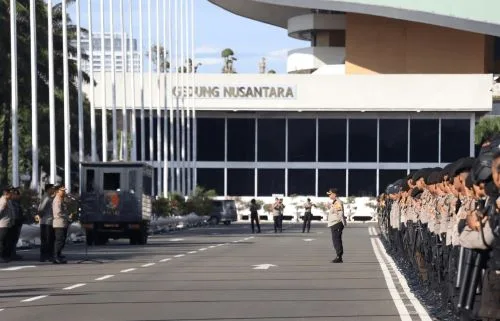 Ribuan personel gabungan disiagakan untuk mengawal aksi demonstrasi peringatan Hari Tani Nasional di depan Gedung DPR/MPR RI, Rabu (24/9/2025) hari ini. (foto: humas.polri.go.id)