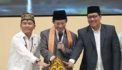Gubernur Kalimantang Tengah Agustiar Sabran (kiri), Menag Nasaruddin Umar (tengah), Rektor UIN Palangka Raya Ahmad Dakhoir (kanan). (Foto : Thesa Putri-kemenag.go.id)