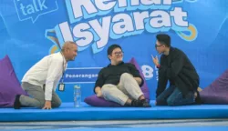 Pelaksana Tugas (Plt) Kepala Museum Penerangan (Muspen), Mashuri Nur, berbincang bersama dua narasumber pada kegiatan Muspen Talk yang dilaksanakan pada Minggu (28/9/2025), yakni Phieter Angdika dan Abdul Azis dari Beriuh Podcast. (Foto: Agus Siswanto/KPM Kemkomdigi-komdigi.go.id)