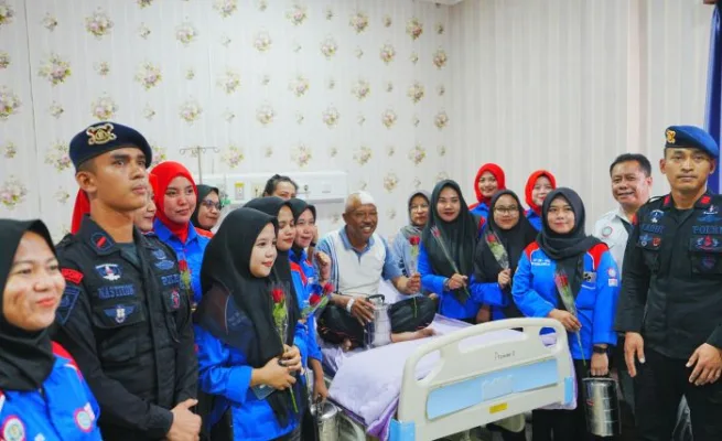 Keluarga besar Konfederasi Serikat Pekerja Seluruh Indonesia (KSPSI) mengunjungi anggota Polri yang menjadi korban akibat kerusuhan aksi anarkis beberapa waktu lalu di Rumah Sakit Polri Kramat Jati, Jakarta Timur, Rabu (3/9) sore. (foto: humas.polri.go.id)