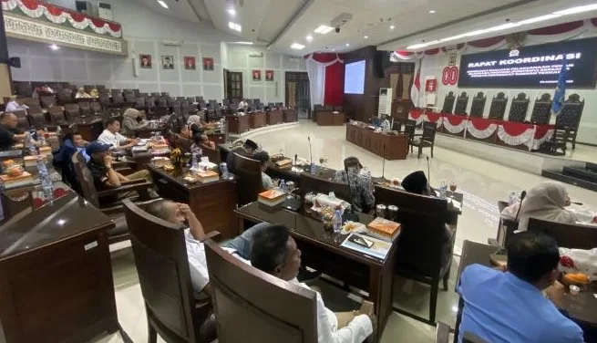 DPRD Kota Malang menggelar rapat koordinasi (rakor) evaluasi pelaksanaan Porprov IX Jatim 2025, Rabu (20/8/2025) di ruang rapat paripurna DPRD Kota Malang.