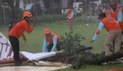 Kementerian Pekerjaan Umum (PU) tengah menangani kerusakan pada dinding penahan tanah pada bahu oprit Jembatan Brantas di Jalan Gatot Subroto KM 88+900, Kota Malang. (Foto:Biro Komunikasi Kementerian PU).