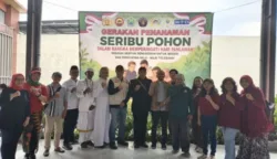 Wali Kota Malang, Dr Ir Wahyu Hidayat MM yang akrab disapa Pak Mbois turun dalam aksi penanaman 1.000 Pohon Durian di area Monumen Hamid Rusdi, Senin (10/11/2025) hari ini. Selain Tanam 1000 Pohon Durian juga merawat kebersamaan. (Foto: Prokopim Setda Kota Malang/istimewa)