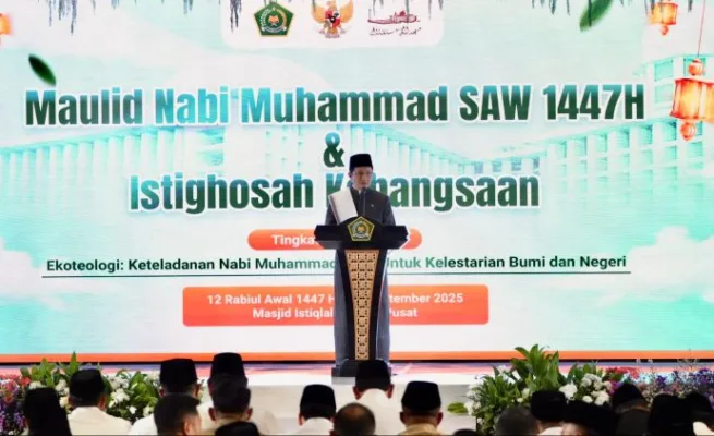 Menag Nasaruddin Umar menghadiri Peringatan Maulid Nabi Muhammad SAW 1447 Hijriah sekaligus Istighosah Kebangsaan di Masjid Istiqlal, Jakarta, Kamis (4/9/2025) malam. (Foto: Akmalul Iman-kemenag.go.id)