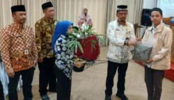 Plh Kepala Dinas Lingkungan Hidup Kota Malang Gamaliel Raymond Hatigoran Matondang saat memberikan bantuan kompos dan bibit tanaman kepada peserta Desiminasi Program Eco Pesantren. (foto: ist)