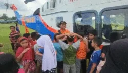 Satu unit helikopter AW169 (P-3303) diterbangkan dalam misi Dukungan Kemanusiaan, membawa total 348 kilogram logistik penting untuk masyarakat terdampak.(Foto: humas.polri.go.id)