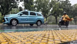 Sejumlah kendaraan melintasi jalan saat hujan. (Foto: Nugroho Sejati-beritajakarta.id)