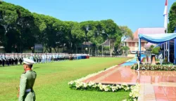 Presiden Prabowo Subianto memimpin upacara peringatan Hari Kesaktian Pancasila Tahun 2025 yang digelar di Monumen Pancasila Sakti, Lubang Buaya, Jakarta, Rabu (1/10/2025) hari ini. (Foto: BPMI Setpres/Cahyo).