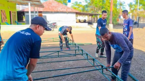 Satgas Pamtas RI-RDTL Sektor Barat Yonarhanud 2 Kostrad Pos Wini kembali menunjukkan kepeduliannya terhadap kesulitan rakyat melalui Program Unggulan Satgas. Yaitu Bantuan Tenda Serbaguna secara gratis di Perbatasan Wini, Kecamatan Insana Utara, Kabupaten TTU. (Foto: Pen Yonarhanud 2 Kostrad)