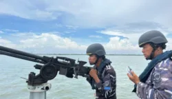 Prajurit KRI Hiu-634 dari Satkat (Satuan Kapal Cepat) Koarmada II, melaksanakan sosialisasi pentingnya membawa dan melengkapi dokumen diri kepada masyarakat pesisir khususnya nelayan di perairan Karang Unarang, Senin (20/10/2025) hari ini. (Foto: Pen/2)