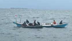 Latihan kerja sama taktis (Kersamtis) dengan Pesawat Udara (Pesud) B737 TNI AU dalam rangkaian Operasi Pengamanan Perbatasan Wilayah Laut dan Udara Indonesia–Malaysia di sektor Karang Unarang, Senin (1/12/2025) kemarin. (Foto: Pen/2)