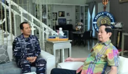 Pangkoarmada II Laksda TNI I G. P. Alit Jaya, S.H., M.Si anjangsana ke mantan KASAL Laksamana (Purn) Bernard Kent Sondakh, Sabtu (29/11/2025) kemarin. (Foto: Pen/2)
