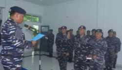 Kakuwil Koarmada II Kolonel Laut (S) Agus Cahyono memimpin sertijab Kepala Akuntansi (Kaakun) Mako Koarmada II dari Letkol Laut (S) Ilham Ganda Kusuma kepada Letkol Laut (S) Dodi Ngelyaratan. (Foto: Pen/2).