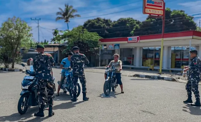 Satgas Pamtas Satgas Pamtas RI–RDTL Sektor Barat Yonarhanud 2 Kostrad Pos Wini melakukan kegiatan pembagian paket sembako berupa beras, gula, dan roti serta penyajian bubur kacang hijau untuk masyarakat di Desa Wini, Kecamatan Insana Utara, Kabupaten TTU, Senin (24/11/2025) kemarin. (Foto: Pen Yonarhanud 2 Kostrad)
