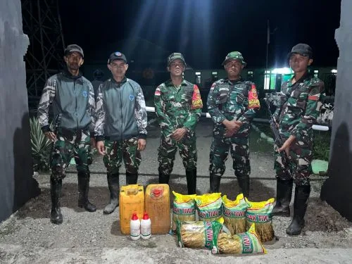 Satgas Pamtas RI-RDTL Sektor Barat Yonarhanud 2 Kostrad Pos Oepoli Tengah mengamankan barang ilegal yang hendak diselundupkan ke Timor Leste di Desa Netemnanu Utara, Kecamatan Amfoang Timur, Kabupaten Kupang, Sabtu (22/11/2025) lalu. (Foto: Pen Yonarhanud 2 Kostrad).