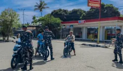 Satgas Pamtas Satgas Pamtas RI–RDTL Sektor Barat Yonarhanud 2 Kostrad Pos Wini melakukan kegiatan pembagian paket sembako berupa beras, gula, dan roti serta penyajian bubur kacang hijau untuk masyarakat di Desa Wini, Kecamatan Insana Utara, Kabupaten TTU, Senin (24/11/2025) kemarin. (Foto: Pen Yonarhanud 2 Kostrad)