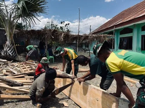 TNI Menyatu dengan Rakyat, Satgas Pamtas Yonarhanud 2 Kostrad Karya Bakti di Gereja Talitakum Taloi Desa Netemnanu Amfoang Timur