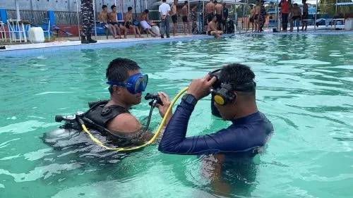 Pada hari yang sama, para prajurit KRI Pulau Rimau-724 turut melaksanakan pengenalan peralatan selam dasar bagi siswa SMAN 1 Sebatik di kolam renang daerah setempat.